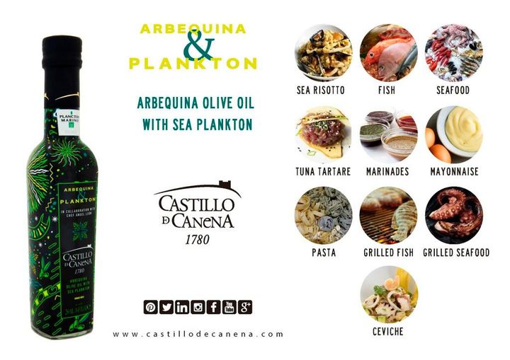 Oliwa z oliwek Plancton – nowość! jedyna na świecie oliwa z oliwek z pierwszego tłoczenia Arbequina nasycona fitoplanktonem morskim. Unikalny na świecie produkt o intensywnym aromacie i wybuchowym morskim smaku, w połączeniu z zielonym i owocowym sokiem z oliwek ze świeżej odmiany Arbequina. Ten nowy olej, w 100% naturalny i wegański – ponieważ plankton jest pochodzenia roślinnego, a nie zwierzęcego – oferuje nam inny i nieograniczony świat kulinarnych możliwości. Niesamowite przeżycie, które zanurza nas w świeżym i intensywnym morzu.