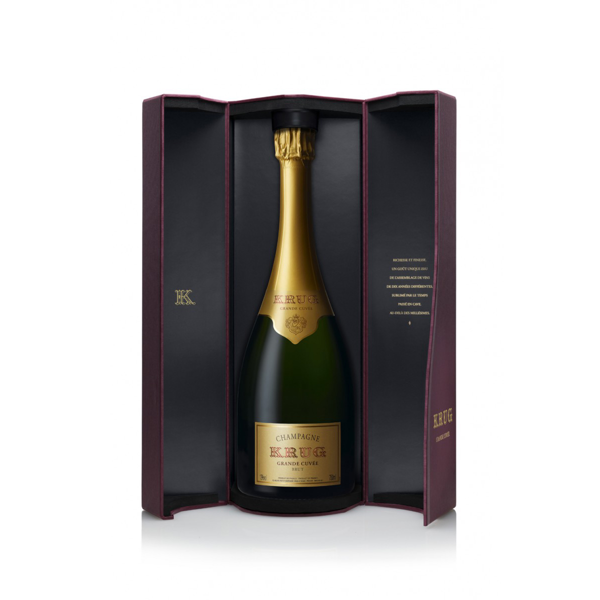 Produkt flagowy, będący najdoskonalszą ekspresją stylu Domu Szampańskiego Krug. Ponadczasowy charakter i niezapomniane doznania związane z Krug’iem Grande Cuvée godzą paradoksalnie – pełnię i finezję oraz dojrzałość i świeżość. Jest wynikiem połączenia ponad 120 win, z dziesięciu lub więcej roczników, z trzech odmian winogron: Pinot Noir, Pinot Meunier i Chardonnay, pochodzących z 25 winnic. Krug Grande Cuvée jest wyjątkowy – to najbardziej szczodry szampan na świecie o nadzwyczajnej finezji. Łączenie tak wielu roczników i ilości win daje mu niespotykane bogactwo smaków i aromatów niemożliwe do wyrażenia w winie pochodzącym z jednego rocznika. To pierwszy prestige cuvée oferowany w wersji non-vintage każdego roku.