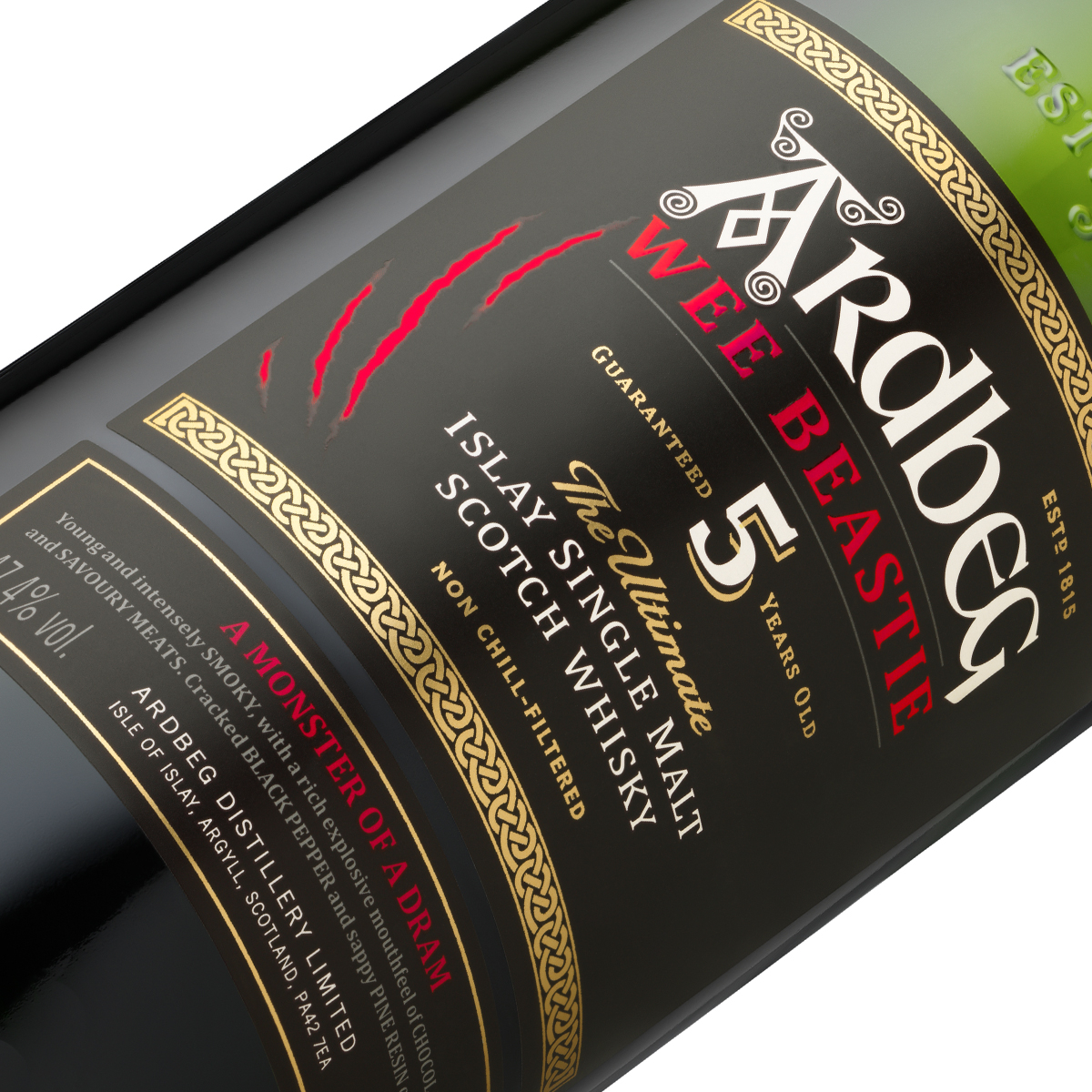 Ardbeg Wee Beastie i 47% zawartości alkoholu sugerują, że mamy do czynienia z whisky o dużej dawce torfu i mocnych doznaniach. Legenda głosi, że Wee Beastie jest nieludzko straszna i dymna, wynurzyła się z torfowisk wyspy Islay.