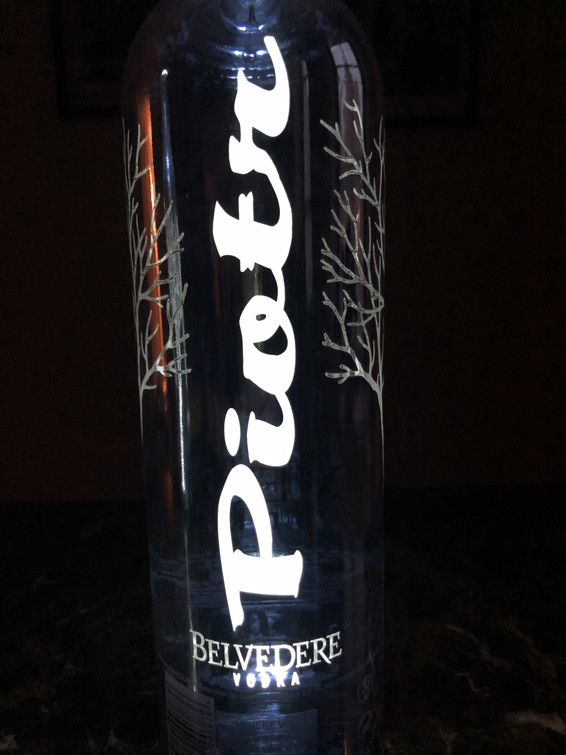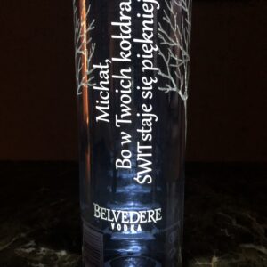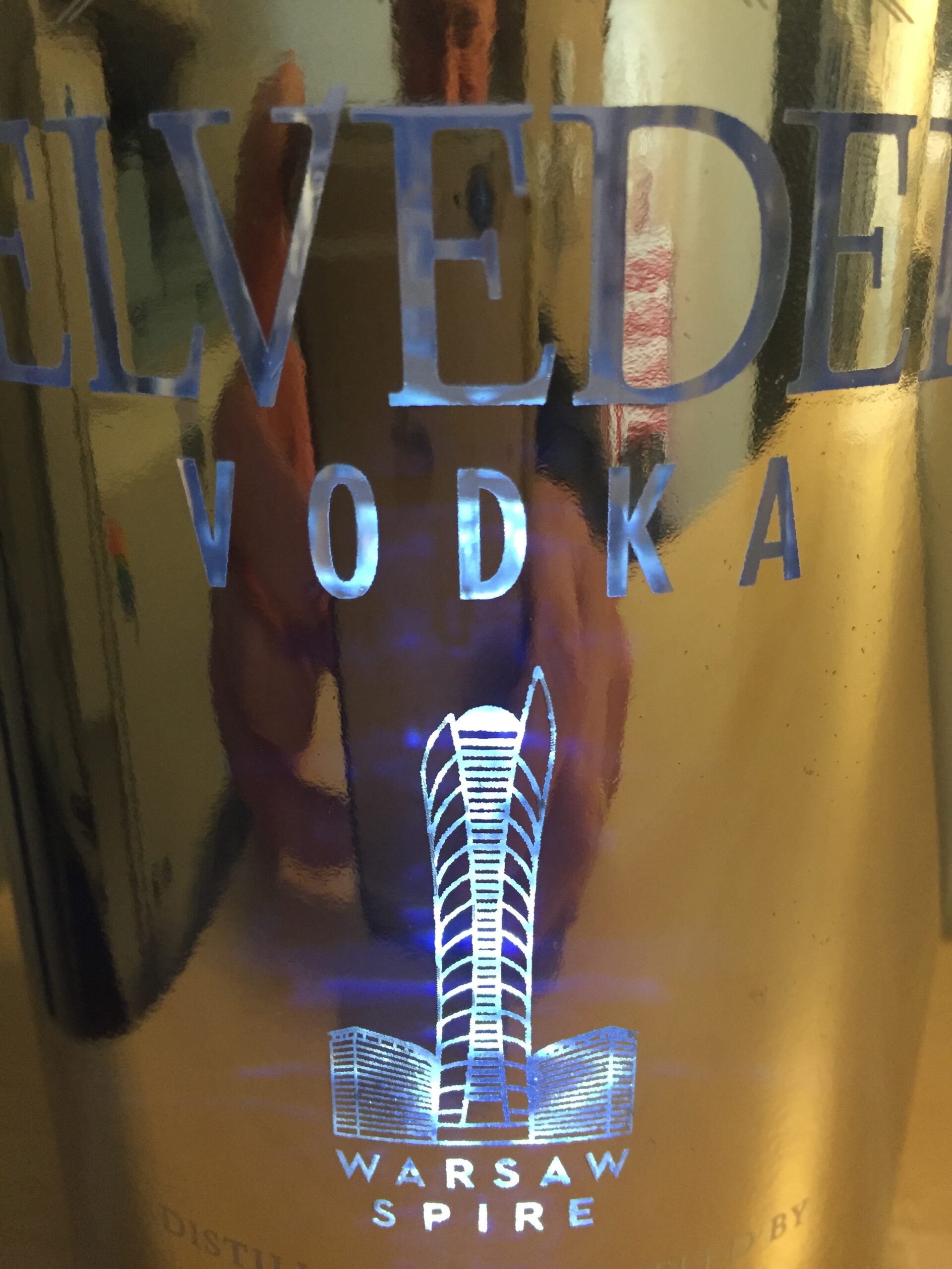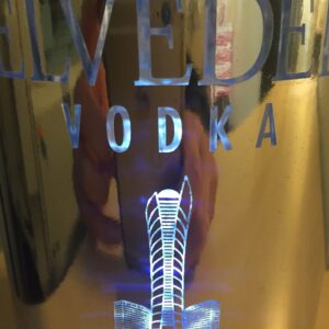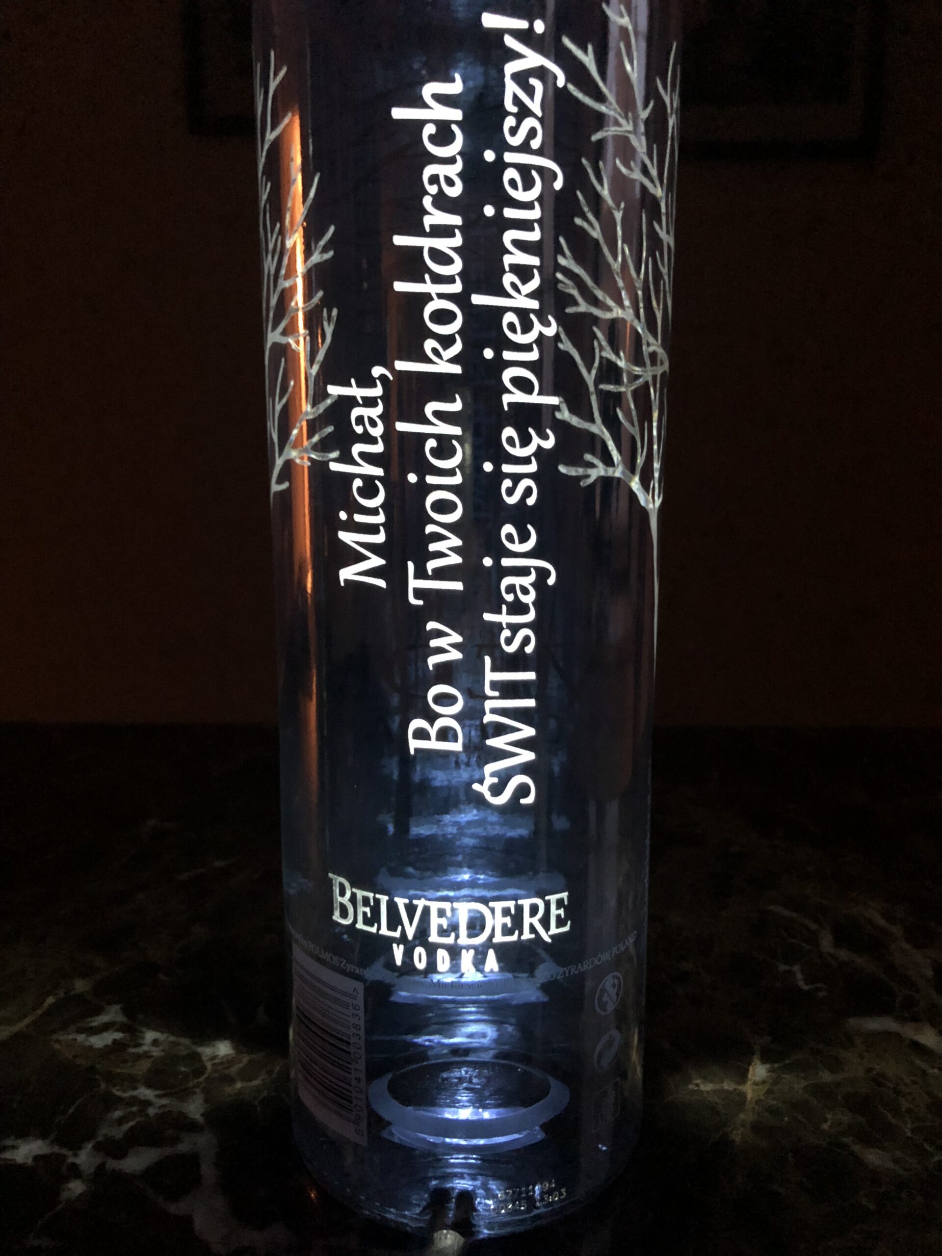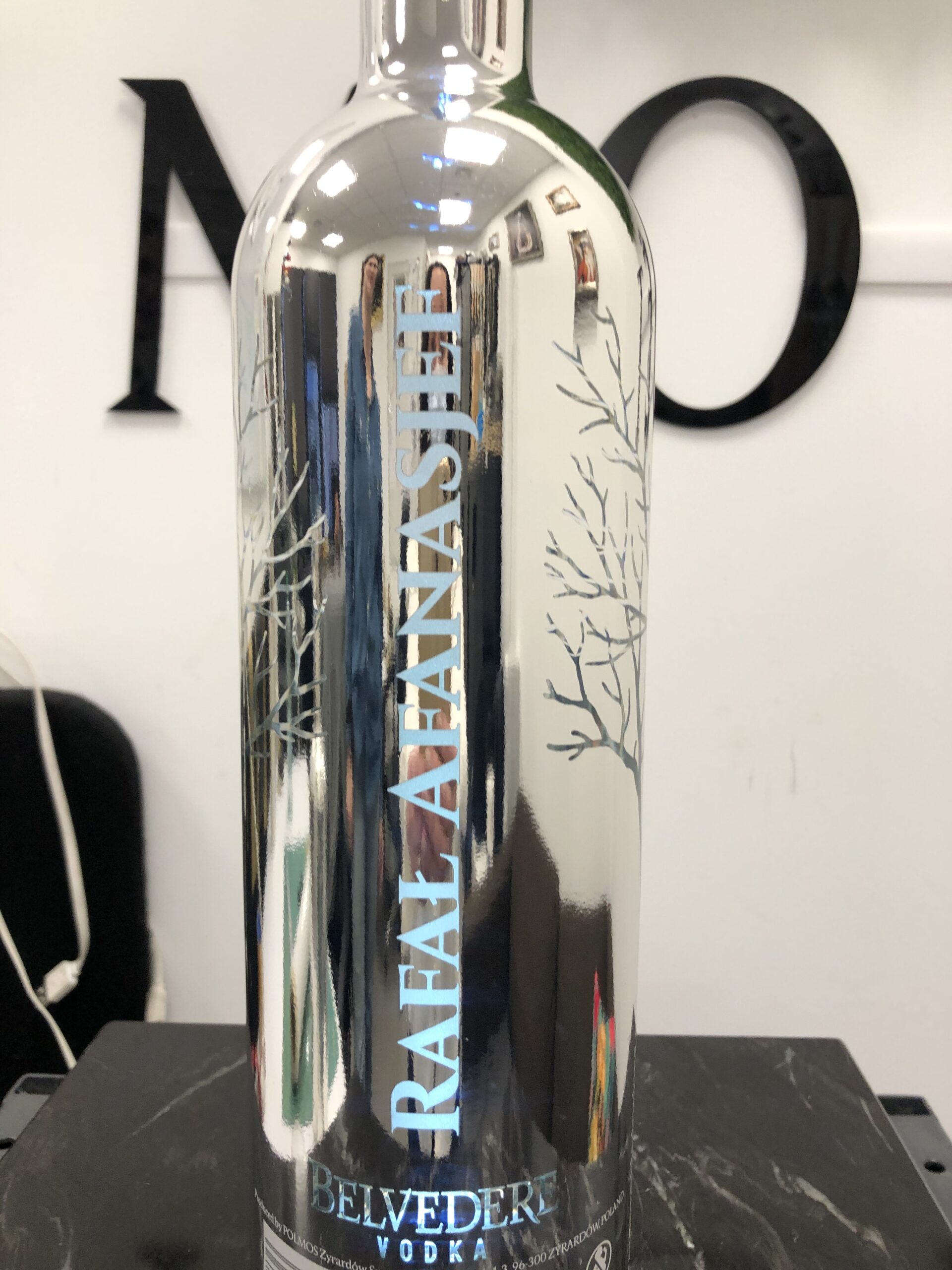 WÓDKA BELVEDERE BESPOKE SILVER PODŚWIETLANA BUTELKA to srebrna, błyszcząca butelka, na której wzory wycina się za pomocą lasera, jest podświetlana od spodu DIODĄ LED, IDEALNA DO GRAWEROWANIA, WYGRAWEROWANA BUTELKA WYGLĄDA SPEKTAKULARNIE !