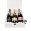 Szampan Veuve Clicquot Brut poj.0,75l, szampan Veuve Clicquot Demi-Sec poj.0,75l, szampan Veuve Clicquot Rose poj.0,75l, korek do szampana, autorska skrzynia ażur drewniana.